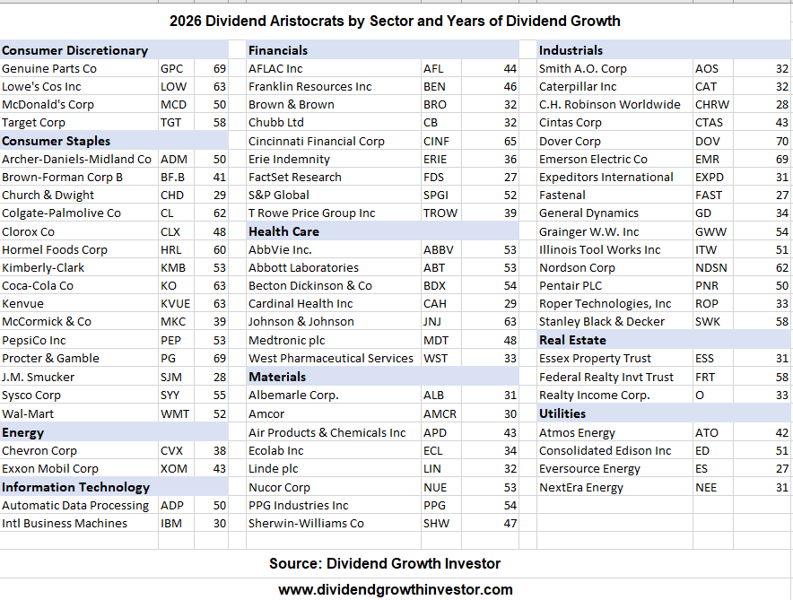There are 69 Dividend Aristocrats for 2026